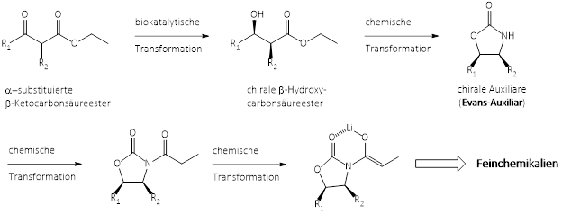Abbildung 2: Chemoenzymatische Synthese chiraler Auxiliare bzw. building blocks für die anschließende stereoselektive Synthese von Feinchemikalien